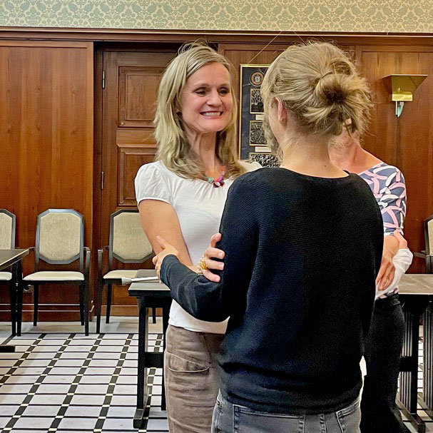 Einen herzlichen Dank an Susanne Stukenberg für ihren Input auf unserem Speed-Dating im Rathaus Schöneberg. Gemeinsam drehten wir – 15 Teilnehmerinnen – im Kennedy-Saal unsere Runden, hatten viel Spaß und kamen sogar ins Schwitzen. Ein wunderbarer Einblick in die Arbeit von Susanne. Susanne bietet ein einzigartiges Seminarkonzept für Persönlichkeitsentwicklung mit Tangoessenz & Pferden an – interessant für Firmen und durch alle Personalebenen bis zur Führungskraft. Jetzt auch als Bildungszeit zertifiziert. https://susannestukenberg.de/seminarreise/