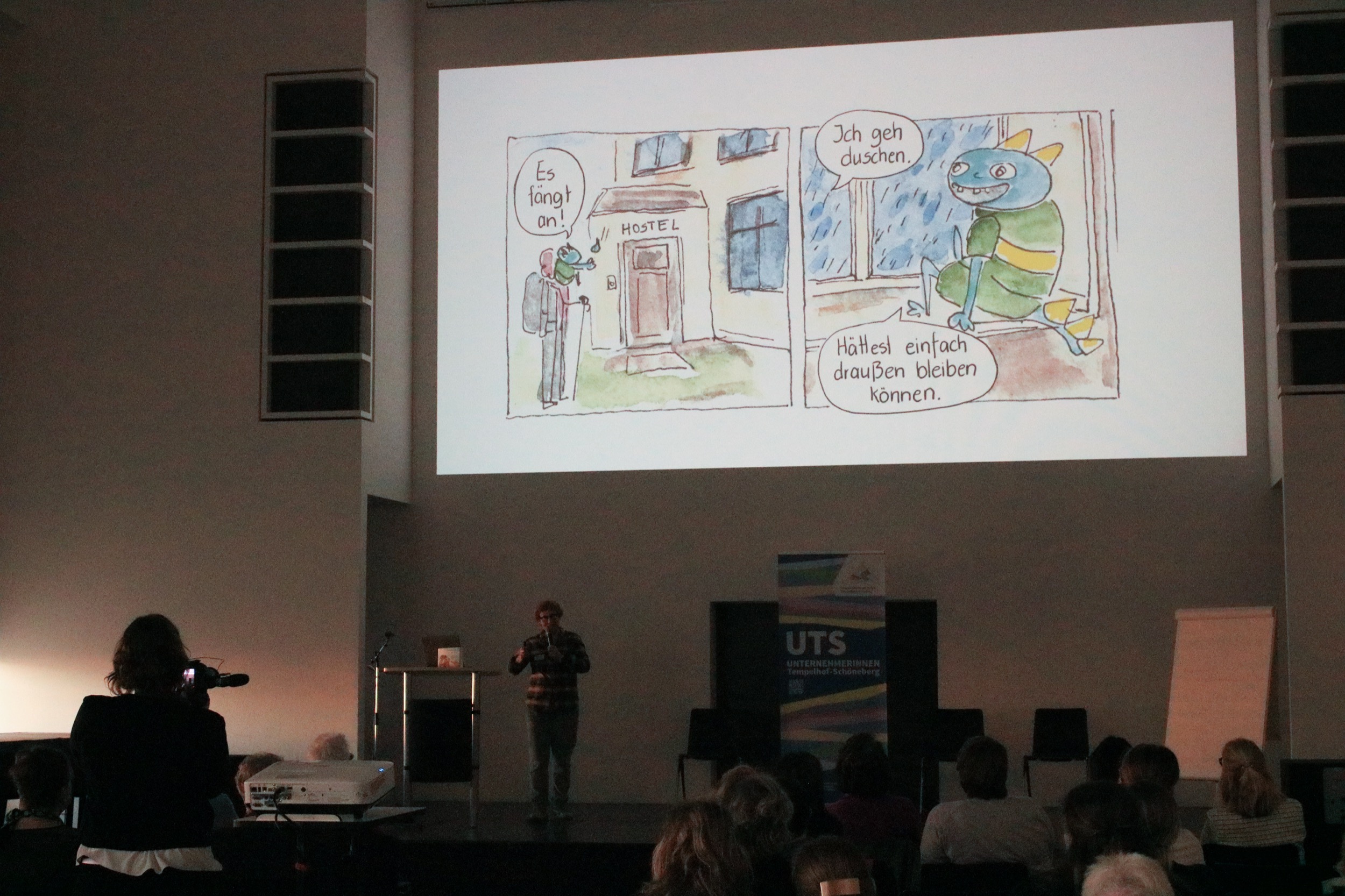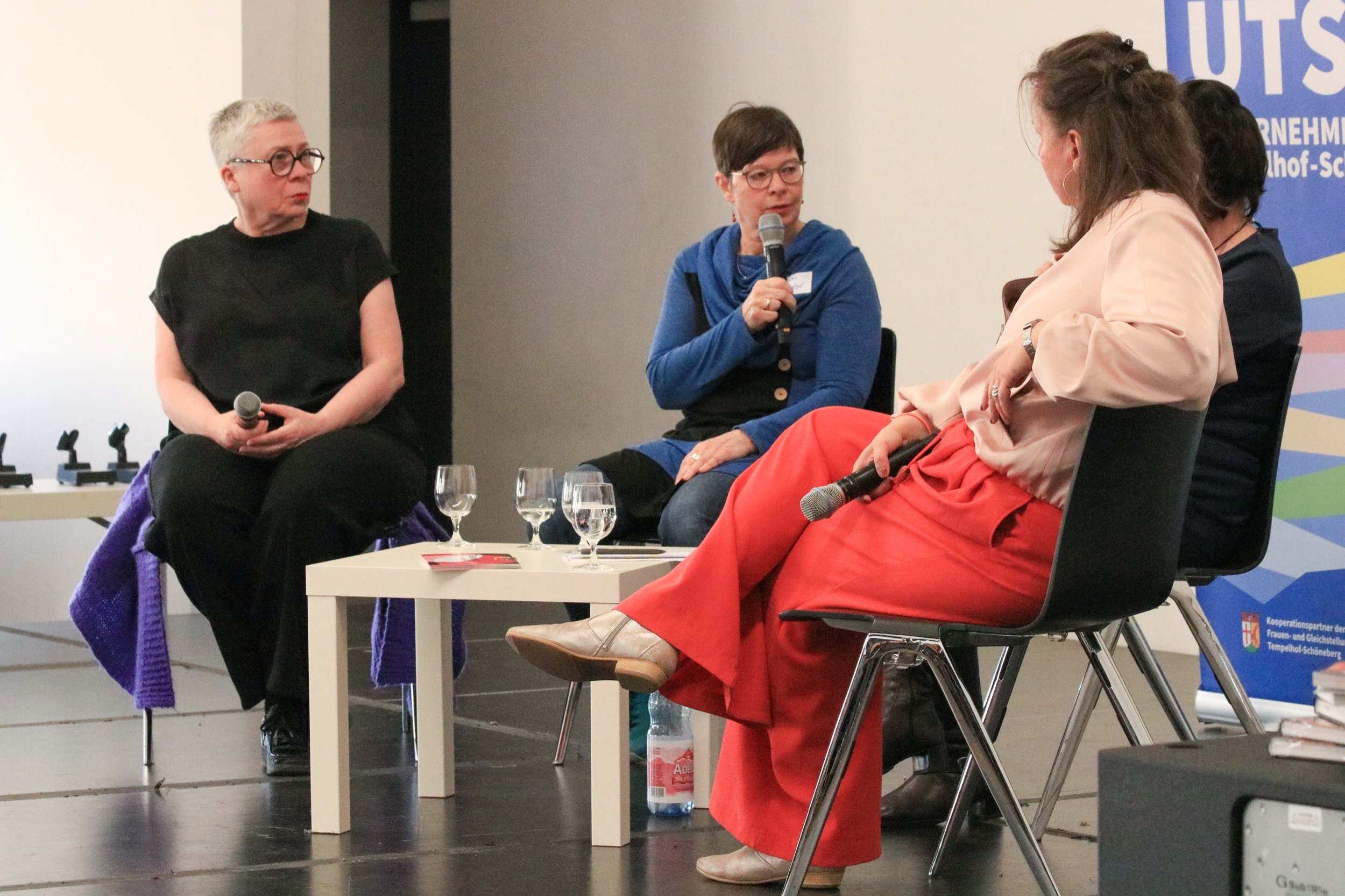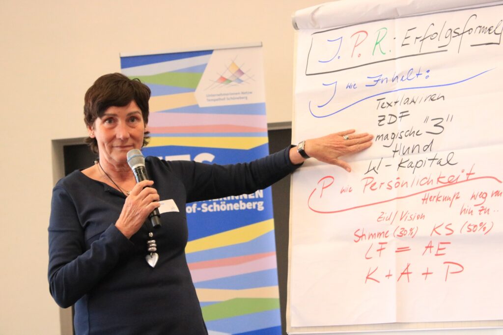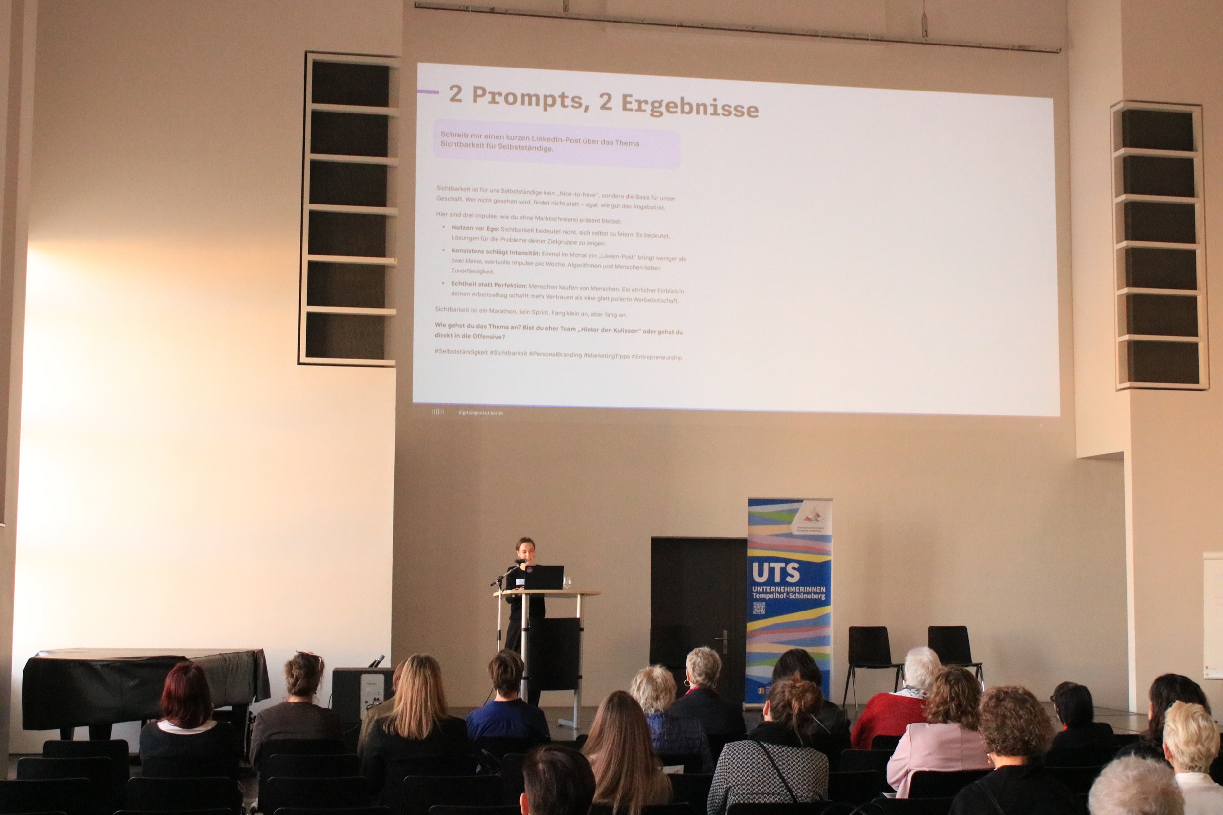 Der UTS-Netzwerktag war großartig, weil wir zum einen ein tolles Programm hatten und dazu so viele interessierte Besucherinnen. Damit überhaupt bekannt wurde, was wir vorhaben, wer auftritt und für die Sichtbarkeit unserer Referentinnen haben wir vorher Print- und Online-Kanäle „bestückt“ und dafür haben tolle selbstständige Grafikdesignerinnen und andere Aktiveviele ehrenamtlich Stunden geleistet.